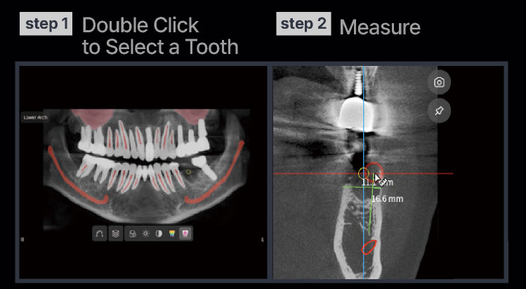 わずか2ステップで高精度な断層画像を生成し、迅速かつ精密なインプラントシミュレーションを可能にします。